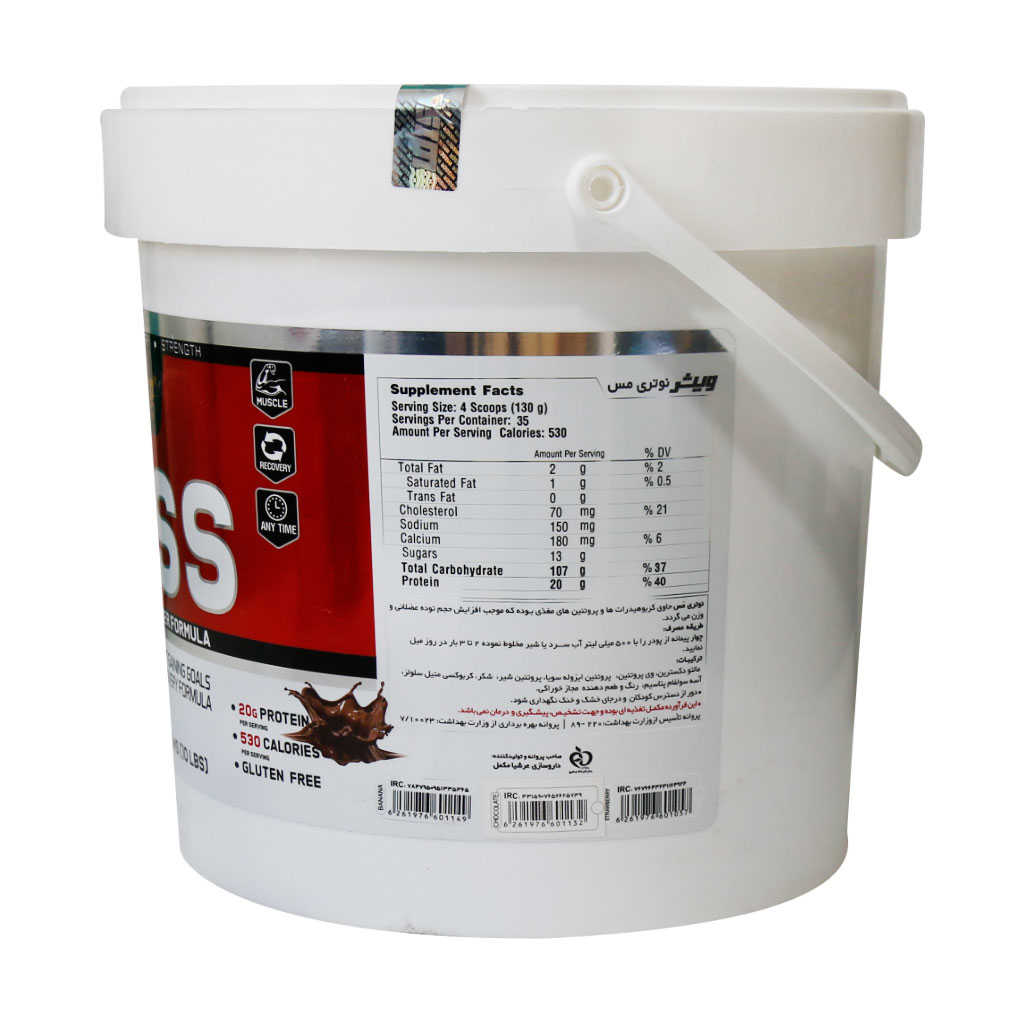 پودر نوتری مس ویثر یک مکمل فوقالعاده جهت ایجاد بافتهای عضلانی و افزایش وزن است. گینر نوتری مس حاوی مقادیر متناسبی از قندهای ساده و مرکب بوده و با فرمولاسیون اختصاصی خود، عملکرد ورزشکاران را ارتقا میدهد. همچنین دارا بودن پروتئینهایی با ارزش تغذیهای بالا تسریع در بازتوانی بدن ورزشکار را به دنبال داشته و میتواند توان فرد را به صورت قابل توجهی بالا ببرد. نوتری مس ویسر علاوه بر یک مکمل غذایی ایده آل جهت مصرف بعد از تمرینات ورزشی، یک میان وعده مناسب برای رسیدن به اهداف افزایش وزن است. این محصول میتواند با برطرف نمودن تمامی نیازهای بدن شما را به وضعیت جسمانی و اندام دلخواهتان برساند.