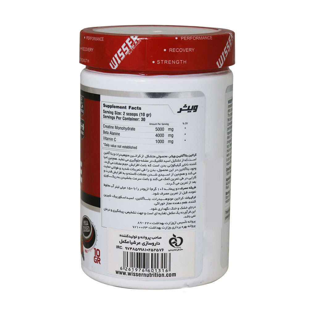 پودر کراتین بتاآلانین ویثر محصولی متشکل از کراتین مونوهیدرات و بتا آلانین است که از تشکیل اسید لاکتیک در عضله جلوگیری مینماید. همچنین احیا کننده ذخایر گلیکوژنی بدن است که باعث افزایش حجم عضلات میشود. وجود بتاآلانین در این محصول، بدن را طی تمرینات شدید و طولانی حمایت میکند و همچنین از اسیدی شدن عضلات کاسته و به افزایش قدرت و کارایی در طی تمرین کمک میکند و باعث سرعت بخشیدن به ریکاوری بعد از تمرین میشود.